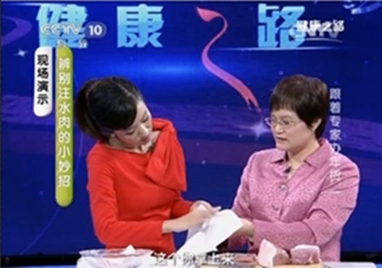 專家教您怎樣辨別注水肉:最有效的方法是貼紙巾,把肉切開后,對著切面貼上紙巾,看油脂含量和水含量,如果紙巾馬上變濕則很可能為注水肉。