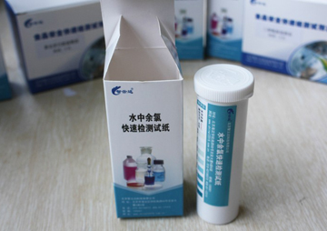 2. 水中余氯測定:取適量樣品于潔凈干燥容器,將試紙塊全部浸入樣液后立即取出,揩掉試紙邊緣多余液體,試紙塊朝上水平放置,40秒時(shí)與色卡比較,讀取結(jié)果。