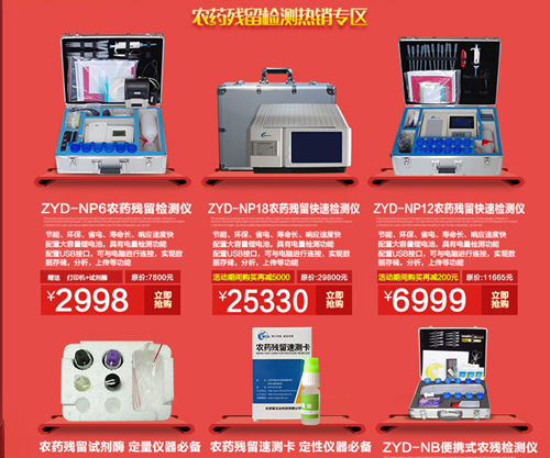 3.農(nóng)藥殘留檢測產(chǎn)品降價大促銷,如原價7800元的ZYD-NP6農(nóng)藥殘留檢測儀,現(xiàn)價2998元。ZYD-NP18農(nóng)藥殘留快速檢測儀,原價29800元,現(xiàn)價25330元,活動期間購買再減5000元。還有適合各大品牌農(nóng)殘儀使用的農(nóng)藥殘留速測卡,原價30元,現(xiàn)價18元。