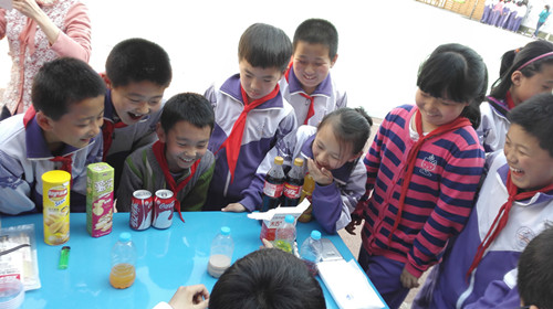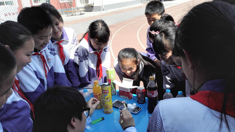 校園食育展覽,是2015北京市教委創(chuàng)新人才培養(yǎng)項(xiàng)目之—,“由食物認(rèn)識(shí)自我,探索世界”。本次展覽主要分為參觀(guān)食安知識(shí)海報(bào)和參觀(guān)食安快檢實(shí)驗(yàn)兩部分,我們準(zhǔn)備的5個(gè)實(shí)驗(yàn):亞硝酸鹽超標(biāo)食品檢測(cè)、經(jīng)二氧化硫漂白食品的檢測(cè)、地溝油和安全食用油的鑒別、奶茶和橙汁的勾兌制作以及可樂(lè)含糖量和薯片含油量實(shí)驗(yàn),深受小學(xué)生們的喜愛(ài)。