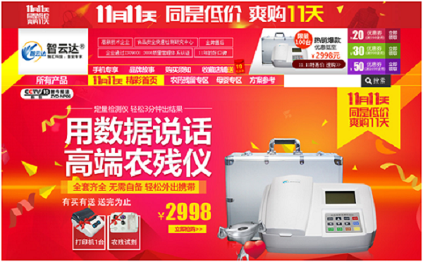 雙十一全球購物風暴來襲,智云達作為您身邊食品安全檢測專家,更多快檢產(chǎn)品,更多優(yōu)惠等你來拿,助力食品安全我們一直在您身邊!