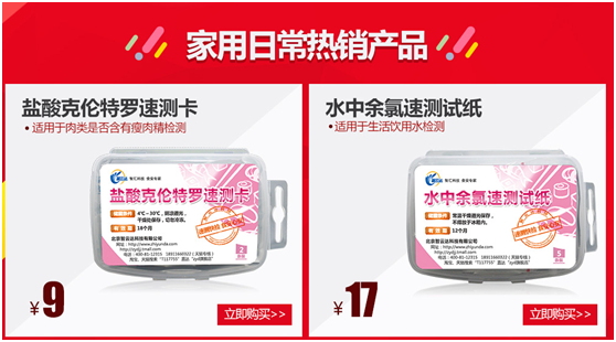 家用日常熱銷產(chǎn)品特價活動。雙十一活動期間二氧化硫38元,奶無憂12元,雙氧水28元,火鍋底料試紙11元,鹽酸克羅特檢測卡9元,水中余氯檢測卡17元,吊白塊檢測試劑77元,大米新生度檢測試劑77元,家用檢測套裝66元,還有更多家用優(yōu)惠產(chǎn)品等您來拿。