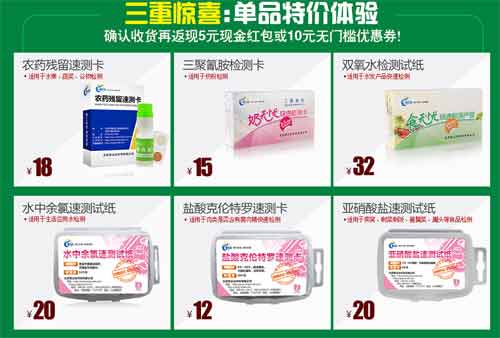 尤其常見的農(nóng)藥殘留速測卡、三聚氰胺速測卡、雙氧水快速檢測試紙等多款適合家庭、個人的快檢產(chǎn)品超低價體驗。