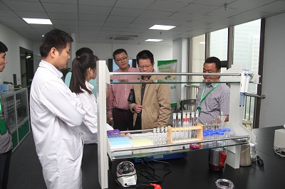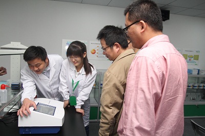 成立儀式結束后,技術人員對參觀人員進行現場檢測實驗演示,分別利用農藥殘留速測卡和農藥殘留速測儀快速檢測果蔬中的農藥殘留,讓參觀人員了解快速檢測技術的優(yōu)勢。