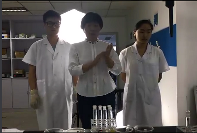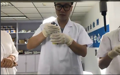 北京智云達(dá)技術(shù)工程師楊老師和趙老師將準(zhǔn)備好的果汁檢測(cè)樣品分別進(jìn)行標(biāo)號(hào),通過(guò)智云達(dá)自主研發(fā)生產(chǎn)的快速檢測(cè)產(chǎn)品:真假果汁速測(cè)盒,對(duì)果汁樣品進(jìn)行快速檢測(cè)試驗(yàn)。