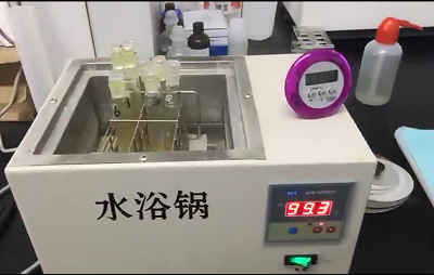 2. 把檢測(cè)管開(kāi)蓋后放入沸水浴中的托架上加熱 5 分鐘后取出,上下?lián)u動(dòng) 6 次。