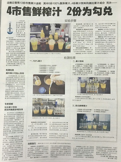 真假果汁大揭秘時(shí)刻到了,今天,2016年7月21日12:00,北京智云達(dá)科技股份有限公司(以下簡(jiǎn)稱(chēng)北京智云達(dá))與法制晚報(bào)再次聯(lián)合,在CEC食品安全檢測(cè)消費(fèi)者體驗(yàn)中心(以下簡(jiǎn)稱(chēng)CEC食安體驗(yàn)中心)進(jìn)行真假果汁現(xiàn)場(chǎng)檢測(cè)實(shí)驗(yàn),并將檢測(cè)過(guò)程及結(jié)果在樂(lè)嗨平臺(tái)進(jìn)行現(xiàn)場(chǎng)直播。