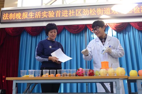 2016年11月24日9:00,北京智云達(dá)科技股份有限公司(以下簡稱“北京智云達(dá)”)與法制晚報聯(lián)手制作首次走進(jìn)社區(qū)活動,在勁松街道雙中心西大望路社區(qū)市民學(xué)校檢測水果糖度。