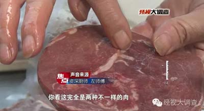 湖南長沙一知名連鎖餐飲企業(yè)近日被指牛排中含有“鴨肉”。