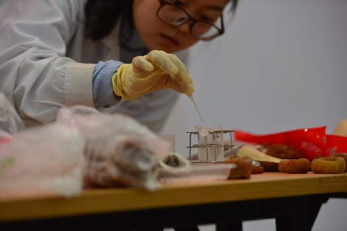 北京智云達技術(shù)工程師楊老師和王老師首先將柿餅表面的白霜沖洗到水中,再通過使用北京智云達自主研發(fā)生產(chǎn)的快速檢測產(chǎn)品:果糖和葡萄糖快速檢測試劑,對樣品溶液的果糖和葡萄糖含量進行檢測,而淀粉含量通過碘溶液進行測定。