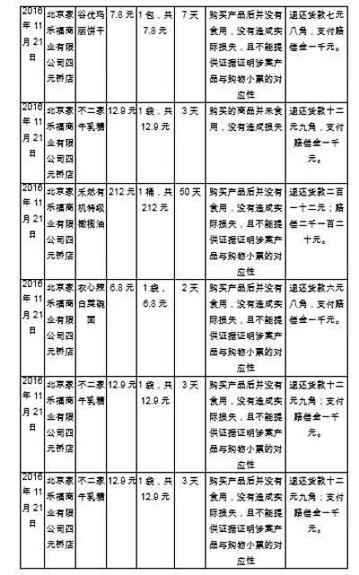 2016年11月,北京市朝陽區(qū)法院審結(jié)了11起家樂福門店出售過期食品被消費者索賠案,結(jié)果家樂福全部敗訴,共需賠償12120元。