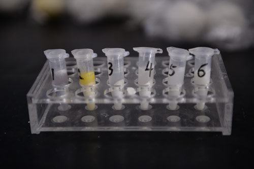 北京智云達(dá)技術(shù)工程師楊老師和王老師首先將樣品粉碎,通過(guò)使用北京智云達(dá)自主研發(fā)生產(chǎn)的快速檢測(cè)產(chǎn)品:黃曲霉毒素B1膠體金檢測(cè)卡,對(duì)樣品溶液進(jìn)行檢測(cè)。