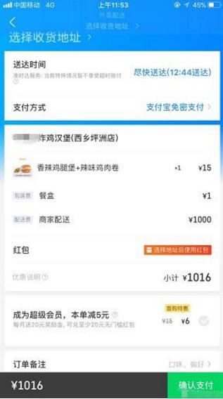 “剛開始是20元,后來又上調到了100元,結果發(fā)現,100元的時候還是有人點單,我們就干脆調到了1000元,一直到閉店和外賣平臺關閉,一共也就有幾十分鐘的時間?!惫ぷ魅藛T告訴北青報記者,“我們是自己店的外賣員進行配送,所以可以自己定價,當配送費上調到1000元以后就沒有人再點單了?!痹摴ぷ魅藛T說,外賣店平日有6、7名配送人員,一般的配送費用依據距離而定,不會超過10元。在16日下午,他們就已經閉店停止配送了,17日上午恢復正常營業(yè),而在配送費標記為1000元的時間段里,并沒有人再繼續(xù)點餐。