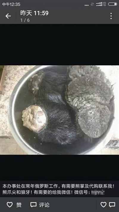 本文關(guān)鍵詞:微信朋友圈公然叫賣(mài)熊掌980元一斤 自稱(chēng)有專(zhuān)門(mén)渠道“代購(gòu)”