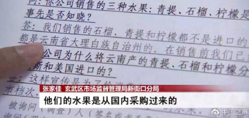 經(jīng)過市場監(jiān)管部門調(diào)查核實,這些水果并非進口,而是國產(chǎn)的。南京市玄武區(qū)市場監(jiān)管局新街口分局張家佳告訴記者:“當時我局在超市發(fā)現(xiàn)這個來源不明的水果的時候,立即要求下架處理,并且供貨商也承認,他們的水果是國內(nèi)采購過來的,說他們的水果來自云南。我們以涉嫌虛假宣傳進行立案調(diào)查?!?/span>
