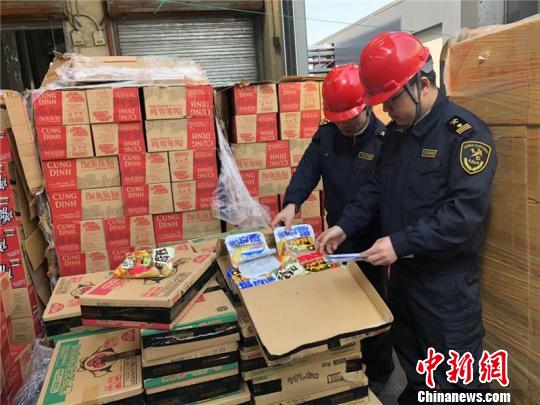 圖為海關(guān)工作人員對(duì)不合格進(jìn)口食品清點(diǎn)核對(duì) 李佳赟 攝