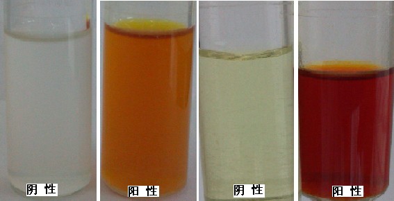 如溶液變?yōu)槌燃t色至棕紅色,則判定為陽性;其他顏色判為陰性。