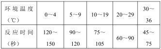 3. 過(guò)氧化值測(cè)試紙的反應(yīng)計(jì)時(shí)視環(huán)境溫度而定,在表中規(guī)定的時(shí)間內(nèi)比色有效。