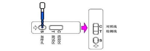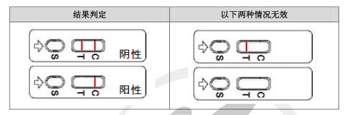 4.結(jié)果應在3~5分鐘讀取,10分鐘后結(jié)果無效。根據(jù)示意圖判定結(jié)果。
