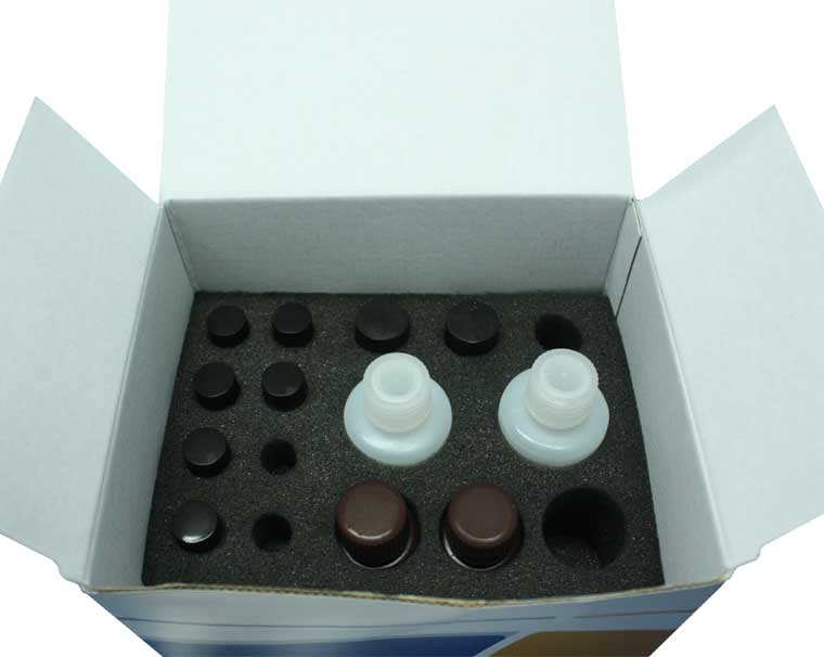 試劑盒保存于2~8℃,不能冷凍,將不用的微孔板重新真空密封。標(biāo)準(zhǔn)物質(zhì)和無(wú)色的顯色劑對(duì)光敏感,因此要避光保存。