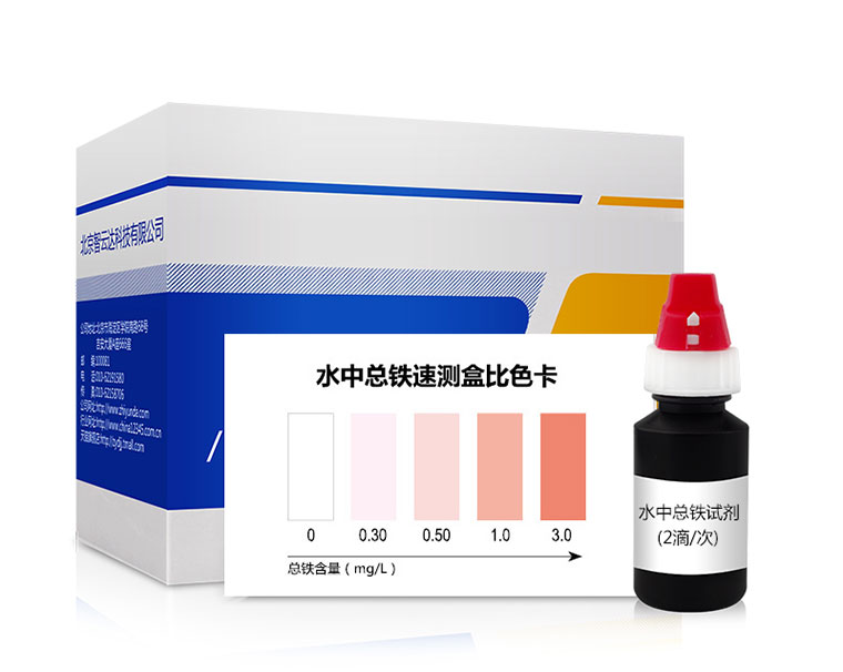 水中鐵離子與檢測試劑反應(yīng)生成橙紅色物質(zhì),含量越高顯色越深。