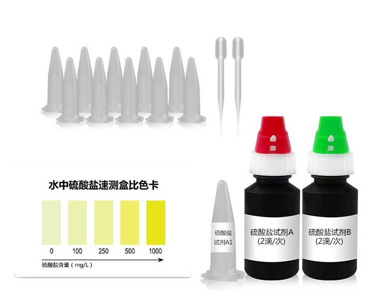 水中硫酸鹽濃度過高時(shí),易引起不良的水味,甚至引起輕度腹瀉,并使鍋爐和熱水器內(nèi)結(jié)垢。在大量攝入硫酸鹽后出現(xiàn)的最主要生理反映是腹瀉、脫水和胃腸道紊亂。人們常把硫酸鎂含量超過600mg/L的水用作導(dǎo)瀉劑。本速測(cè)盒適用于水中硫酸鹽的快速檢測(cè)。