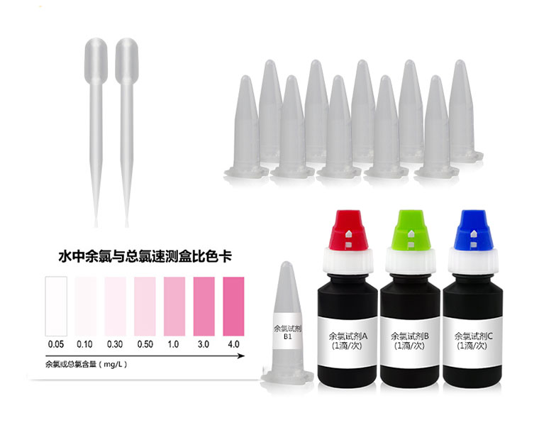 總氯分為游離性余氯(余氯)和結(jié)合性余氯。把氯投入水中后,除了與水中有機(jī)物、還原物和細(xì)菌的殺滅等氧化還原需要消耗的氯以外,水中還剩下的氯,而稱為總氯。游離性余氯,一般指水中的氯分子、次氯酸分子及次氯酸離子??偮群繙p去游離性余氯含量,可得到結(jié)合性余氯含量。本試劑盒適用于水中余氯、總氯的現(xiàn)場(chǎng)快速檢測(cè)。