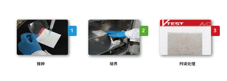 V—TEST ®微生物快速檢測試紙片為預制型培養(yǎng)基系統,由上層薄膜層、中層無紡布、下層底板組成。將特定的培養(yǎng)基和指示劑附著在載體上,通過微生物在上面生長、指示劑顯色來測定食品中的微生物。本適用于食品及原料中致病菌的測定,也可以用于食品加工環(huán)境中的致病菌的測定以及現場執(zhí)法等檢測。