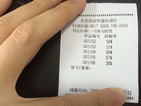 PS:技術(shù)工程師陳磊表示,ZYD-NP6農(nóng)藥殘留檢測(cè)儀只適用于有機(jī)磷和氨基甲酸酯類農(nóng)藥殘留的快速檢測(cè)??焖贆z測(cè)作為初篩,不具備法律效應(yīng),農(nóng)殘疑似超標(biāo)想要進(jìn)步一部了解更精準(zhǔn)數(shù)據(jù)可以到國(guó)家權(quán)威檢測(cè)機(jī)構(gòu)進(jìn)行檢測(cè)。