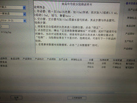 3、倒入比色皿中,置于PCS多功能食品安全檢測(cè)儀中檢測(cè)。檢測(cè)結(jié)果:兩個(gè)樣品均未檢出雙氧水