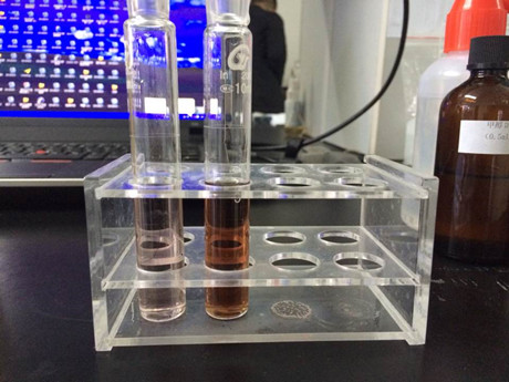 1、樣品管:取0.5mL樣品液于10mL或25mL比色管中,加D溶液0.5mL,加A溶液0.5mL靜、置15min,加入B溶液0.3mL,然后沿管壁緩慢加入C溶液5mL,加塞搖勻??瞻坠軆?nèi)用蒸餾水0.5mL替代樣品液,其余步驟與樣品管相同。