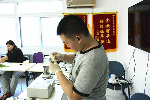 下午由河北農(nóng)業(yè)大學(xué)食品質(zhì)量與安全專(zhuān)業(yè)于鳴訓(xùn)講師帶領(lǐng)學(xué)員自己動(dòng)手操作檢測(cè)了油菜中的農(nóng)藥殘留,牛奶中三聚氰胺檢測(cè)、枸杞二氧化硫檢測(cè)、亞硝酸鹽檢測(cè),地溝油檢測(cè)等。學(xué)員熱情度很高,課程結(jié)束了還意猶未盡,在輕松的學(xué)習(xí)氛圍中進(jìn)一步了解快檢,應(yīng)用快檢。