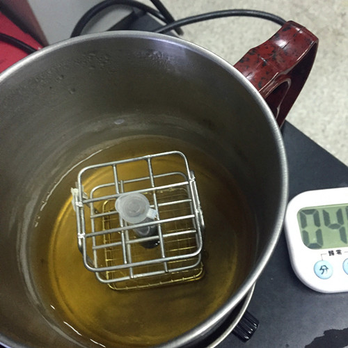 蓋上離心管蓋,放入沸水浴中的托架上加熱 2 分鐘后取出,上下?lián)u動(dòng) 6 次作為待測(cè)液。
