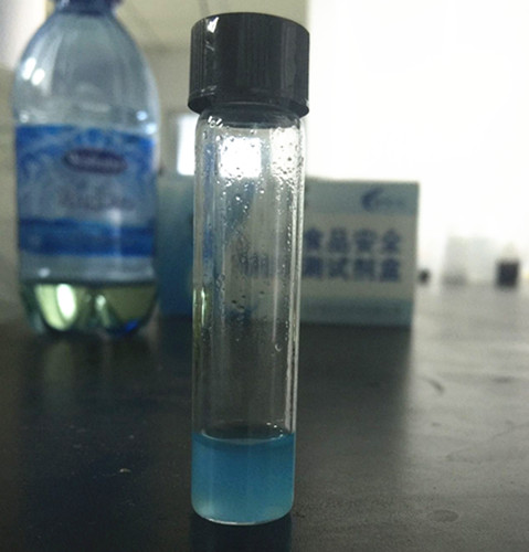 結(jié)果判斷:如溶液顯淺黃色,說(shuō)明油樣酸價(jià)≥8mgKOH/g,酸價(jià)指標(biāo)為陽(yáng)性;溶液顯藍(lán)色、淺藍(lán)色或綠色,酸價(jià)指標(biāo)為陰性。溶液出現(xiàn)混濁,水分指標(biāo)為陽(yáng)性;溶液澄清透明,水分指標(biāo)為陰性。