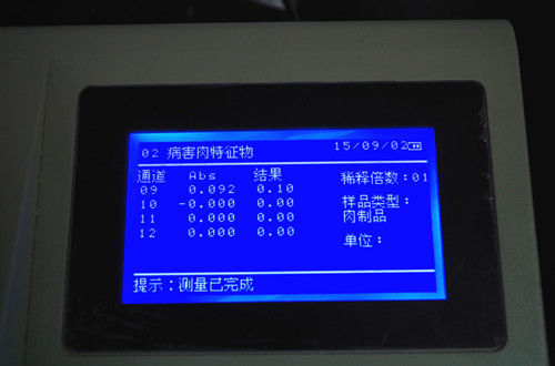 結(jié)果顯示樣品中POD活性值低于正常豬肉,疑似病害肉??焖贆z測(cè)只能作為初篩,建議送到第三方檢測(cè)機(jī)構(gòu)進(jìn)行定量檢測(cè)。