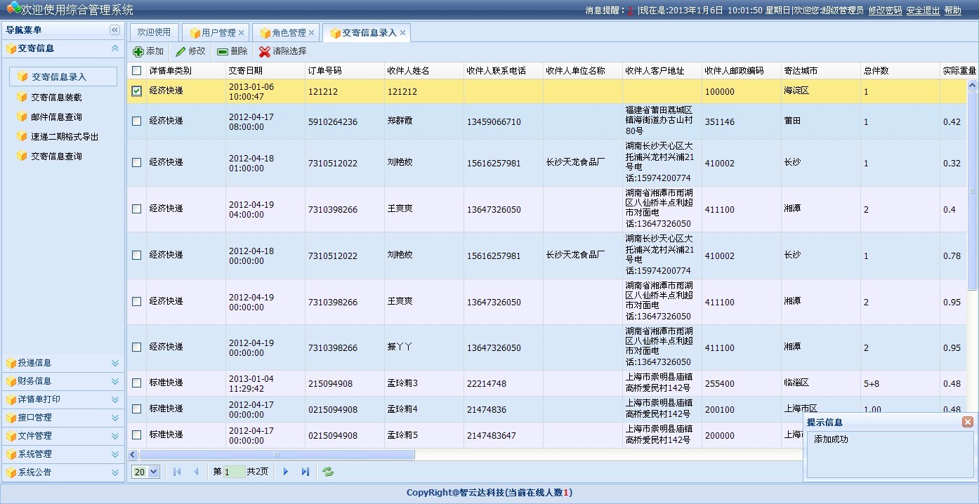 2、打印出的詳情單數(shù)據(jù),如下圖,格口號檢索方式只有打印過的才會得到數(shù)據(jù)。